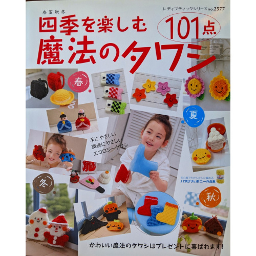 本書では四季を感じられるデザインのかわいいエコたわしの作り方を101点も紹介しています。