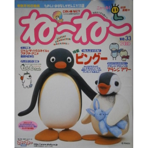 楽しいお話がいっぱいの絵本雑誌。今回は1年ぶりのピングーの特集。楽しいお話が全部で13話。ね~ね~キャラクターのクリスマスシールやちぇりー・たるとのクリスマス・カードも付いてます。