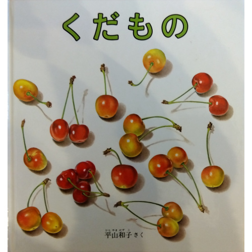 すいか、もも、ぶどう、なし、りんごなど、日常子どもたちが食べるくだものを、まるで実物かと思わせるほど鮮やかに描いた、いわば果物の画集。